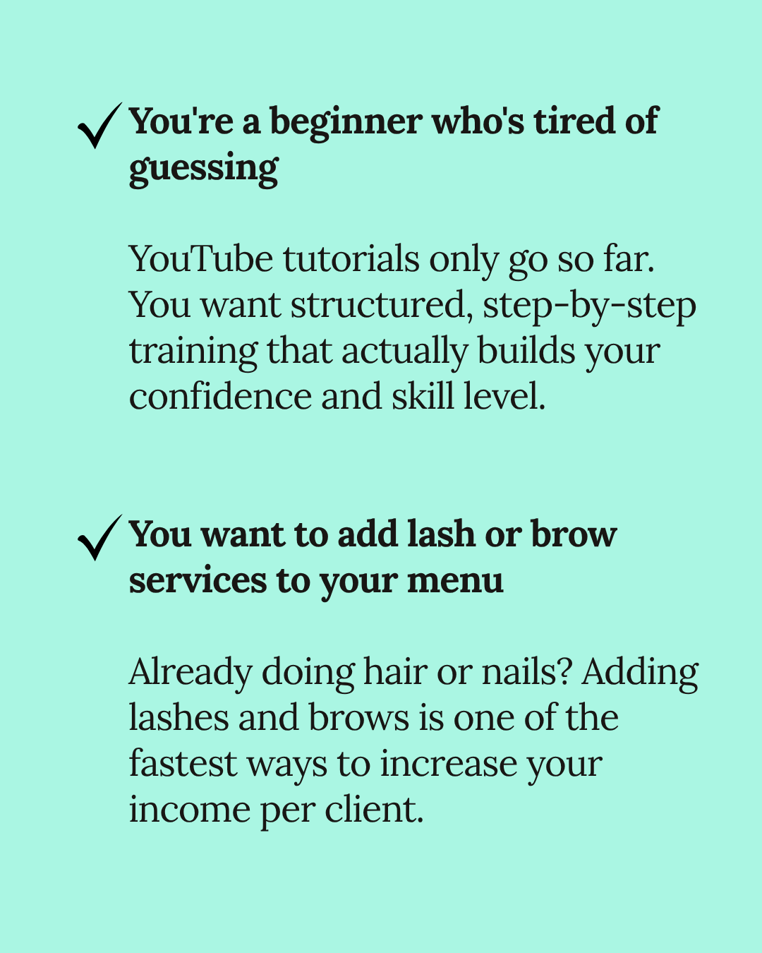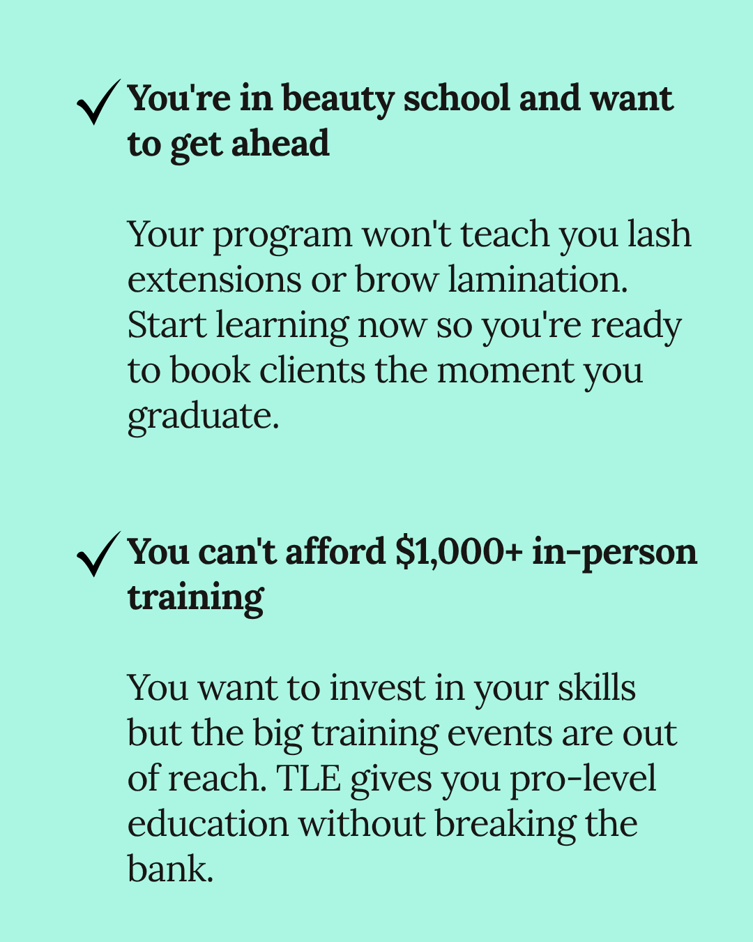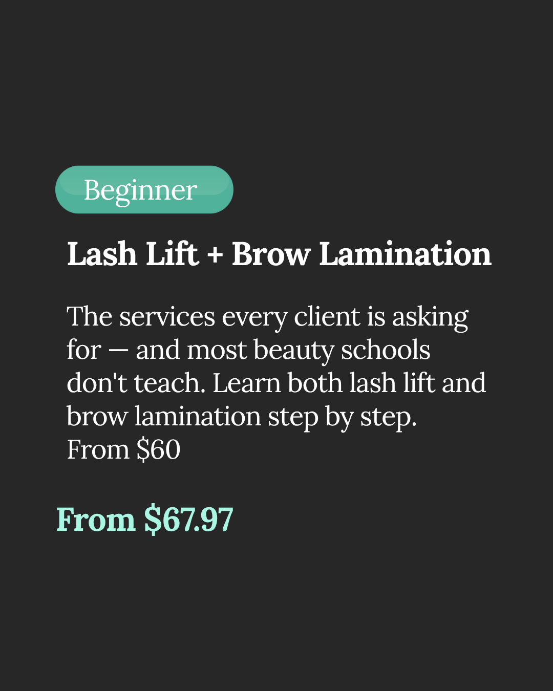 Professional-level lash and brow training built for beauty school students and beginners — affordable, self-paced, and accessible from anywhere.